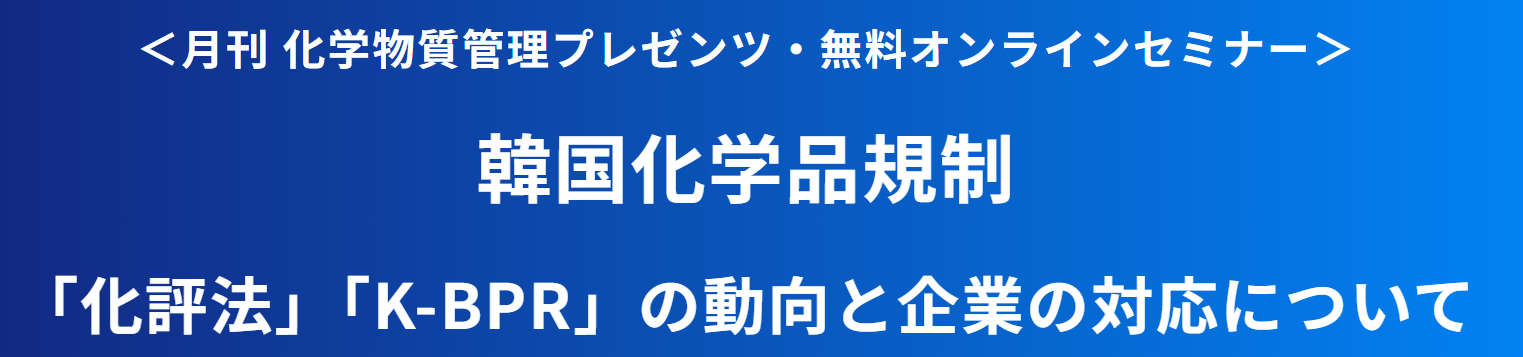 主題 : 韓国化学品規制「化評法」・「K-BPR」の動向と企業の対応について